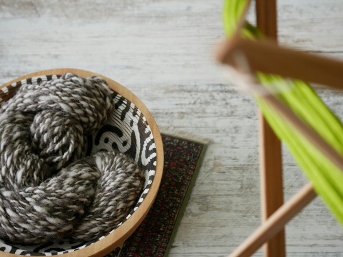 Garnskålen er fremstillet af indisk palisandertræ, som giver et robust og naturligt udtryk. Træets struktur og farvetoner gør hver skål unik, samtidig med at materialet er tungt nok til at stå stabilt på bordet under brug.